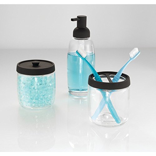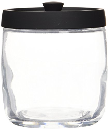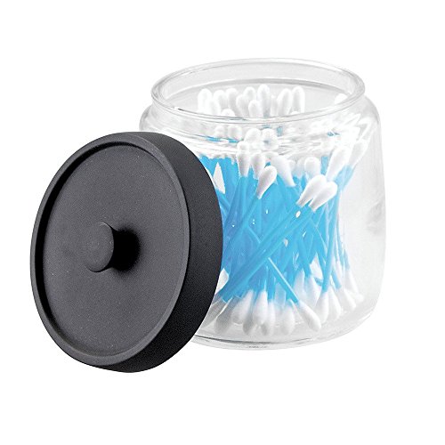 InterDesign Ariana Bathroom Vanity Glass Canister Jar for Cotton Balls, Swabs, Cosmetic Pads - Clear/Matte Black