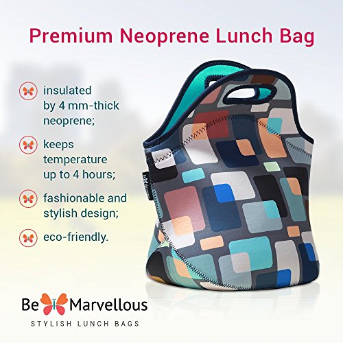 Neoprene Insulated Lunch Tote Bag - Premium Lunch Bags for Women Adults Kids and Teen Girls - 12.5"12" 6.5" by Be Marvellous