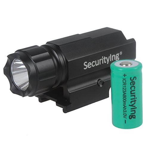 SecurityIng LED Gun Tactical Flashlight, 300LM 2 Modes Handgun Torch Pistol Light with Quick Release Weaver Mount for Compact Pistols Airsoft + 800mAh ICR 123A Battery