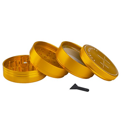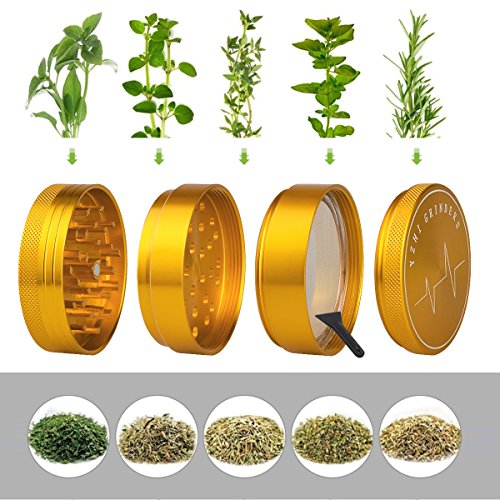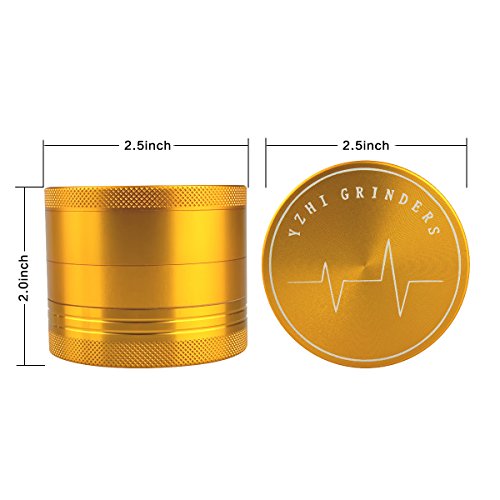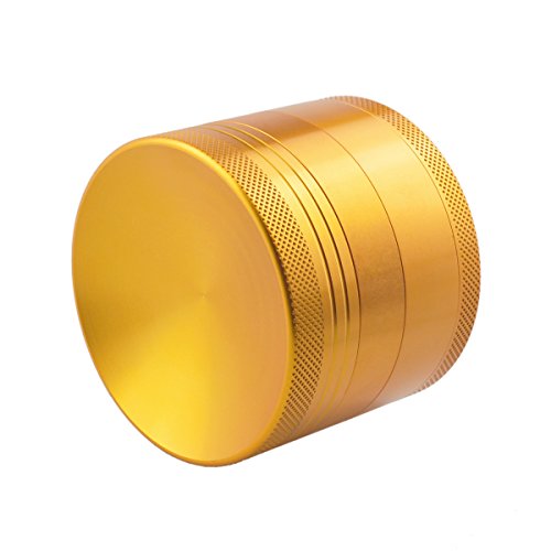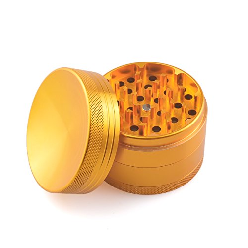 Herb Grinder with Pollen Catcher 2.5 inch Aluminum Dry Herb grinder 4 Piece Sharp Curved Teeth (Gold)