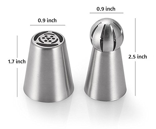 - INCLUDES EVERYTHING YOU NEED - 12 Russian Icing tips, 2 Russian Sphere Tips, 1 Leaf tip, 1 Coupler Ring for sphere Tip, 1 Coupler Ring for Russian Tip, Tri-coupler and a silicone bag. GREAT VALUE!