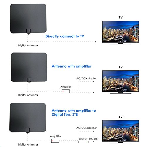 1, Check to make sure you have correctly connected the antenna to your HDTV or third-party HD receiver. 2, Re-scan for channels: In the TV's setup menu, set the mode to indoor antenna or air. Refer to the TV manual for detailed instructions. 3, Reposition the amplifier antenna in a different location. It is suggested place it higher on a wall or closer to a window. Sometimes moving a few feet can make a difference. 4, keep the indoor antenna away from those big power consumption devices interference, such as air conditioner, refrigerator and microwave oven,etc. 5, This is an amplified TV antenna. If a signal cannot be received with the external amplifier, remove the antenna amplifier and try again.