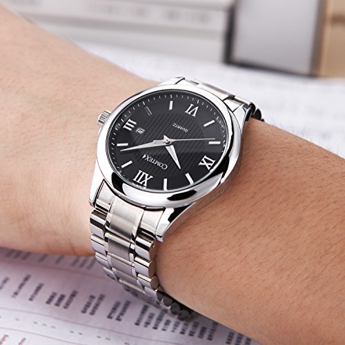 COMTEX 손목시계 블랙 로마숫자 캘린더 기능 스테인레스 아날로그 멋쟁이 방물시계 맨즈