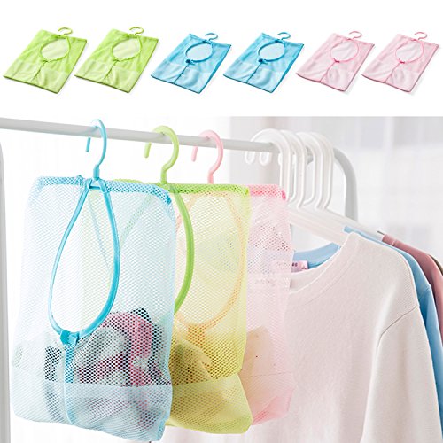 6Pcs Storage Hanging Mesh Bags Space Saving Hamper Bag for Bathroom Shower Storage Organizer and Clothes Clip Collection 3 Colors