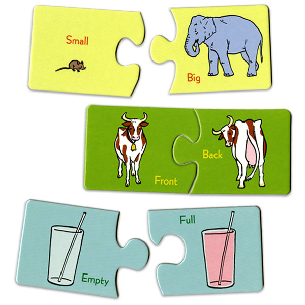 - 반대말로 된 이미지에 대해 말함으로써 자기표현과 어휘 발달을 장려합니다.