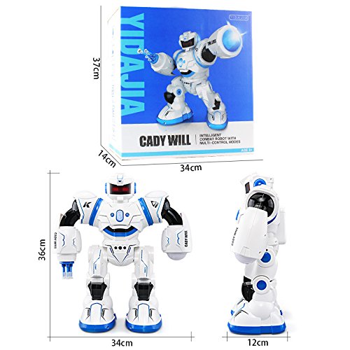 -. Feature : 1. Made of high quality plastic, non- toxic, low smell, durable and safe for kids to play. / 2. Using simple gestures to control your robot. / 3. Two color, Two Characters Cady-wida and Cady-wini / 4. Move in all directions. Able to avoid obstacle. / 5. package include: 1*Robot; 1*Remote Control; 5*bullet; 1*User manual; 1*USB charging cable