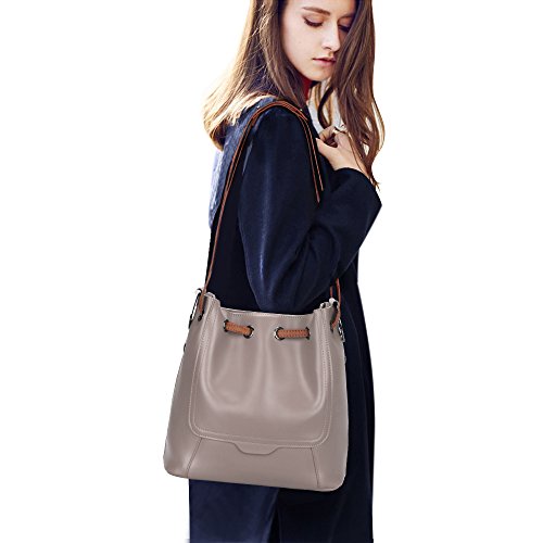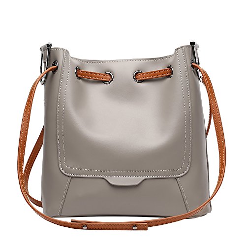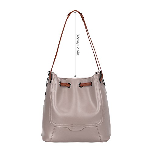 Women Genuine Leather Shoulder Bucket Bag Crossbody Top-handle Purse