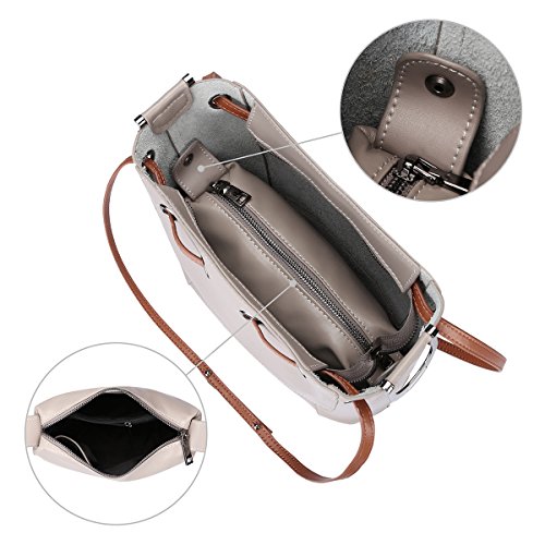 - Durable Materials: Split cow leather (outside bag) + faux leather (inside pouch). High quality gun metal hardware. Top zipper closure for your security