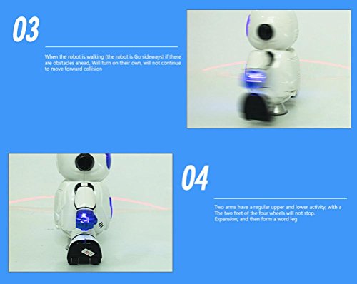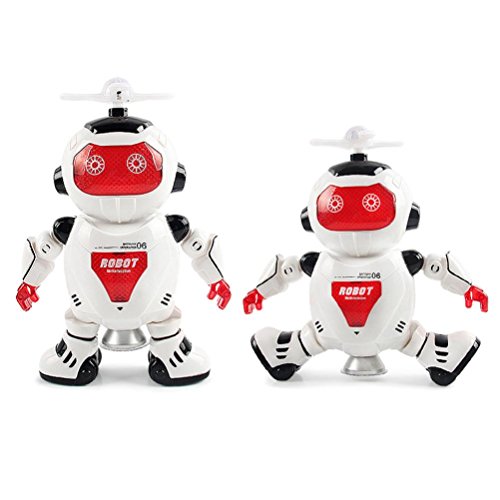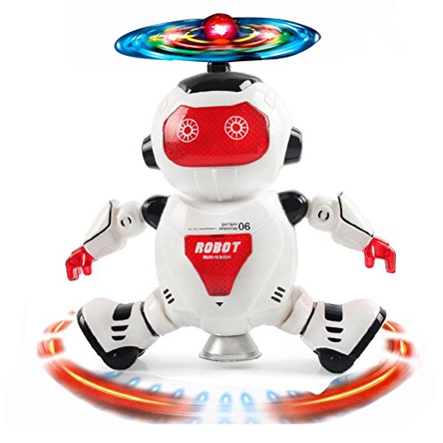 -. Feature : ①Features: Battery Operated,Flashing,Sounding / ② Fun Dancing Robert Electronic Toys With Music Lightening Toys Gift For Kids Children / ③It is an incredible robot that can bring a lot of fun to you. / ④Christmas birthday gives the best gift for kids and friends / ⑤Theme: Forward, backward, beautiful light, singing, dancing, spinning, walking upright