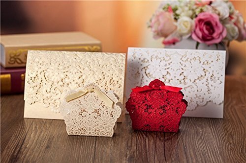 PONATIA 50 PCS Laser Cut With Ribbon Wedding Party Favor, Wedding Gift Bags Chocolate Candy and Gift Boxes (Gold)
