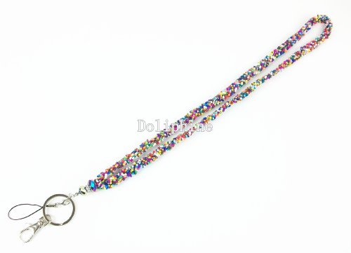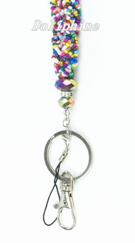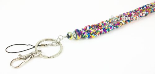 Crystal Mini seed Beaded Necklace LANYARD Keychain with Clasp for Key / ID / Cell Phone Holder (13 Colors for choice) (Rainbow)