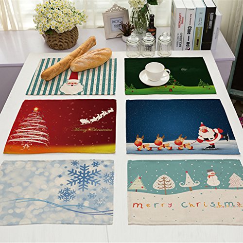 Wispun Christmas Decorations Printe Santa Claus Elk snowflakes on Linen Mats Tableware Mats Food Dinning Placemats (A)