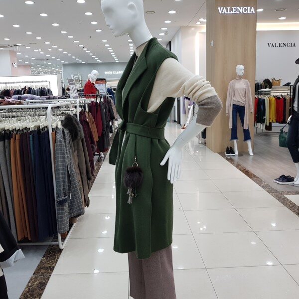 롱하고 박시한 멋스러운 모직코트로 폭스털장식은 다르곳에 하셔도좋습니다.