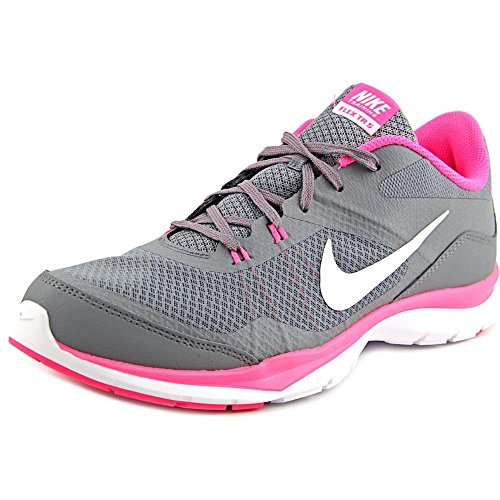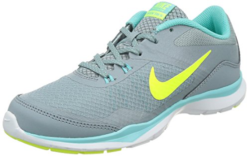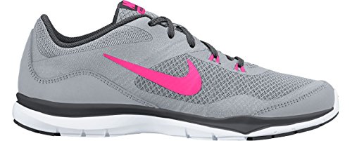 Nike Women's Wmns Flex Trainer 4, COOL GREY/LASER CRIMSON-POLARIZED BLUE-POLARIZED, 9 M US