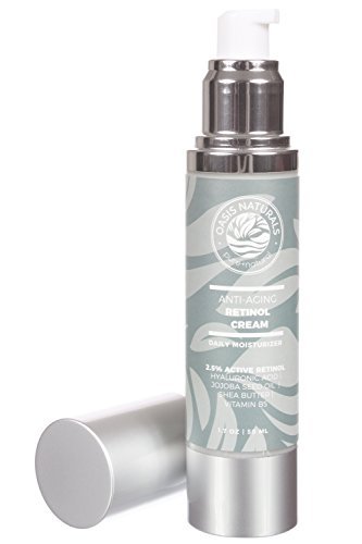 Oasis Naturals is proud to offer you our premium Anti-Aging Retinol Cream serum with hyaluronic acid, shea butter, and jojoba seed oil.RETINOLA vital component to the production of collagen and new skin cells, Retinol helps to build firm, full-bodied skin that glows. Use the Oasis Naturals Retinol Cream every day, and give your skin the resources it needs to repair itself and return to a more youthful state.HYALURONIC ACIDHyaluronic acid is a chemical in your skin that continually decreases as you age. With daily replenishing through use of our Retinol Cream, skin regains its child-like freshness. Fade fine lines and wrinkles with this soothing formula, created to plump and nourish aging skin.SHEA BUTTERFor a soothing, hydrating finish the Oasis Naturals Retinol Cream includes shea butter, the wonder-ingredient for smooth and supple skin. Quench your skin and eliminate dryness while you restore that youthful glow you've been missing.VITAMIN B5We include Vitamin B5 in our Retinol Cream formula in order to help restore the skins elasticity and increase moisture retention. B5 also protects the skin from future irritation and encourages the growth of new, more elastic skin cells to help slow the aging process and preserve youthfulness.INGREDIENTSWater, Glyceryl Stearate SE, Cetyl Alcohol, Retinol, hyaluronic acid, Stearic Acid, Glycerin, Simmondsia Chinensis (Jojoba) Seed Oil, Shea Butter, Vitamin B5, Tocopherol Acetate, Propolis Extract, Centella Asiatica Extract, Equisetum Arvense Extract, Taraxacum Officinale Extract, Geranium Maculatum Extract, Camelia Sinensis Extract, Xanthan Gum, Phenoxyethanol, Ethylhexylglycerin, White Tea Extract- Oasis Naturals Retinol Cream - With Hyaluronic Acid, Shea Butter & Vitamin B5 - 1.7 Ounce Glass Bottle with precision dropper - Paraben and Sulfate Free - Customer Satisfaction GuaranteedFeature