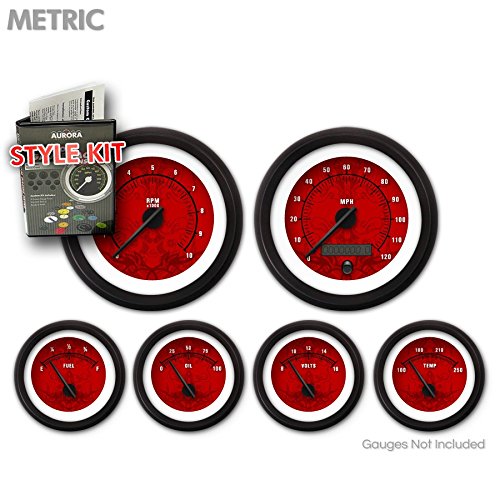 Studio : Aurora Instruments Publisher : Aurora Instruments Binding : Automotive Product Description Style Kit - Metric Tribal Red, Black Modern Needles, Black Trim Rings Aurora Style Kits lets you transform the look of your Aurora Gauges with ease. Each gauge style kit includes gauge faces, needles, and trim rings for oil pressure, fuel level, tachometer, speedometer, volt, clock, oil temperature, and turbo boost. Simple, detailed instructions make changing out your Aurora gauge faces, needles, and trim rings a snap - even when the gauges are installed. Choose from thousands of gauge face styles or create you own online. Available in Imperial (SAE) and Metric. Aurora gauges offers the worlds largest selection of gauges and instrumentation for your ride, and are the world's only gauges offering interchangeable gauge faces, trim rings, and needles. Choose from thousands of designs and options, or custom create your own . 0