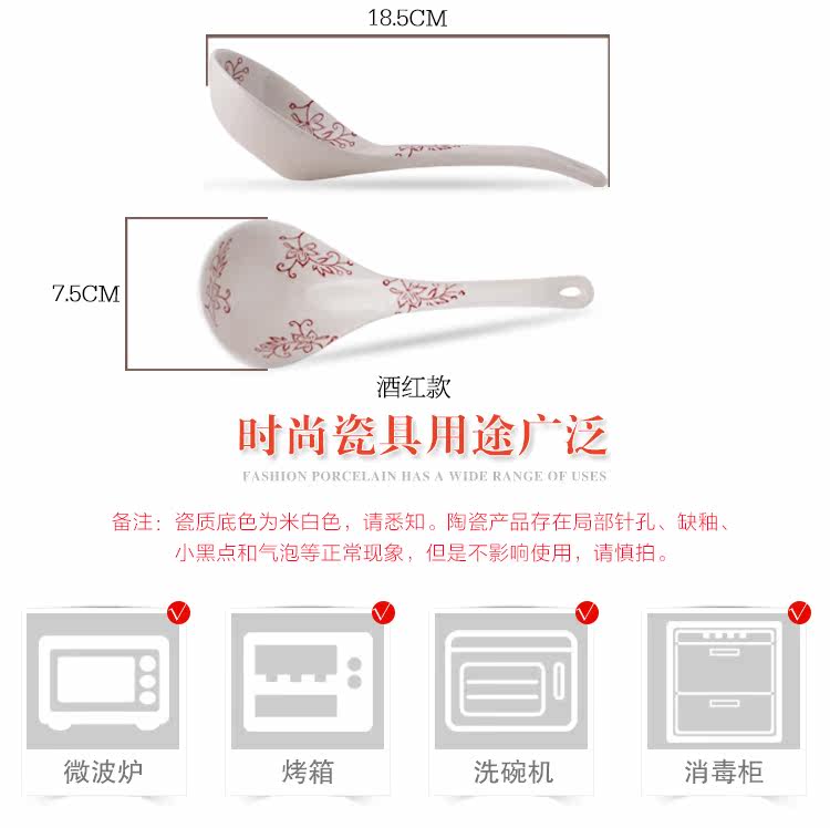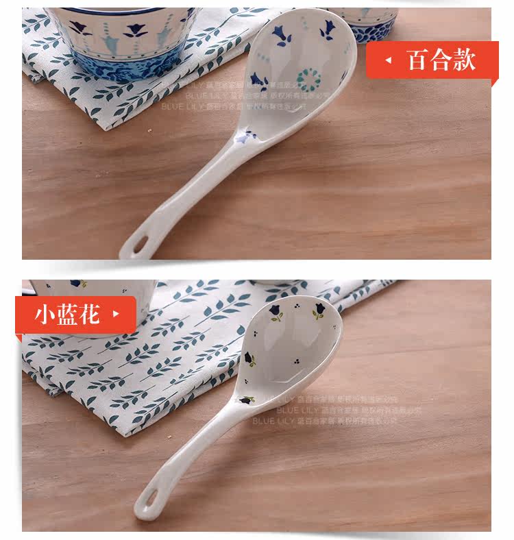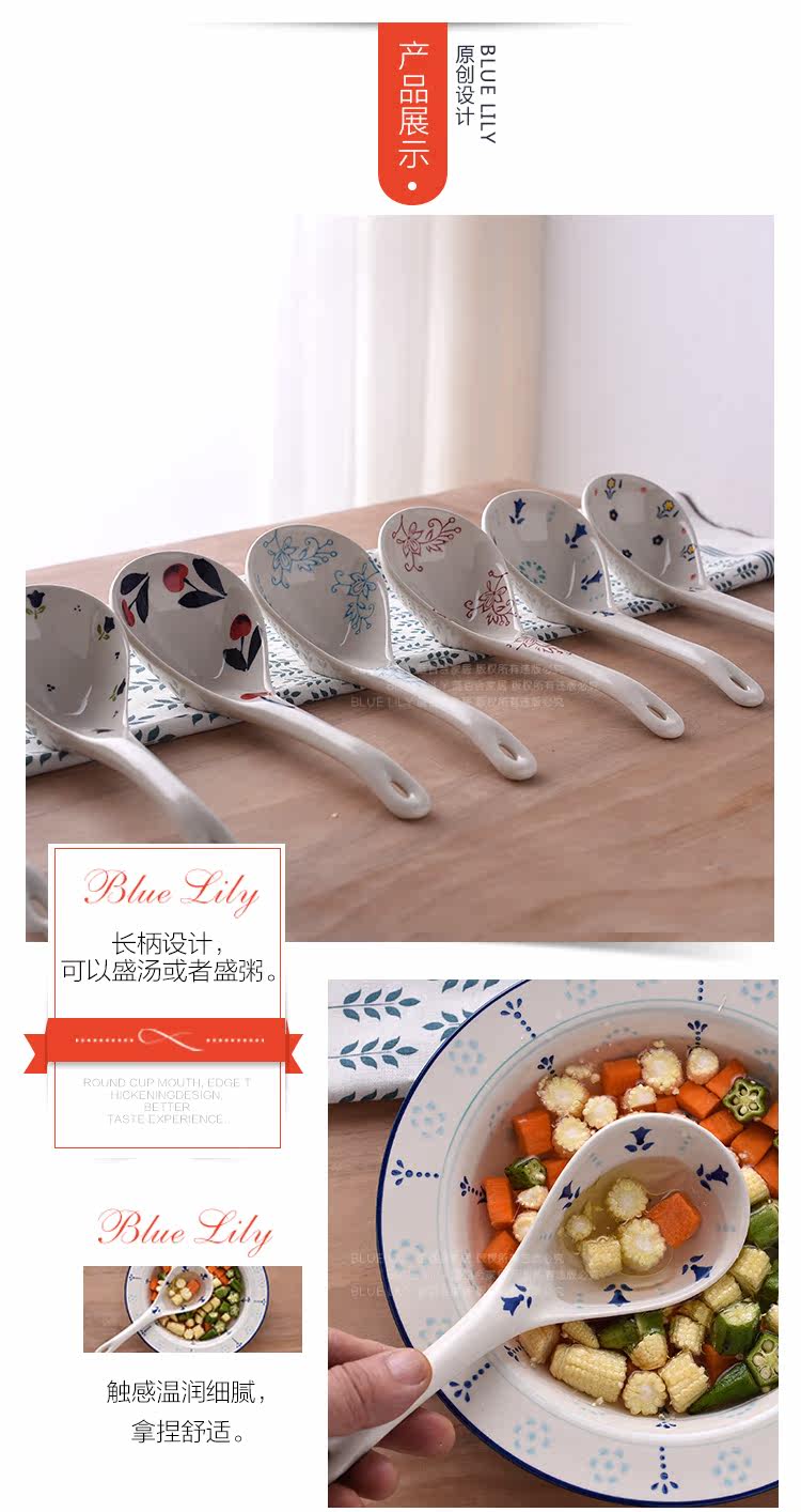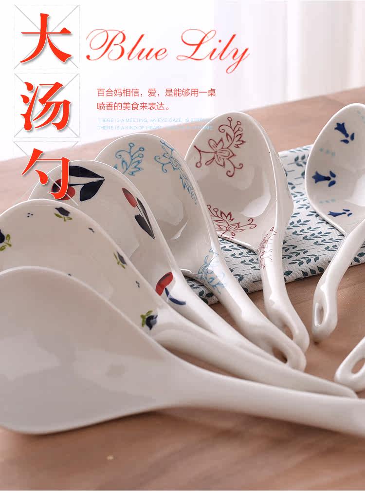 釉下彩汤陶瓷大勺子汤勺家用长柄深勺大号汤勺家用餐具长柄稀饭勺