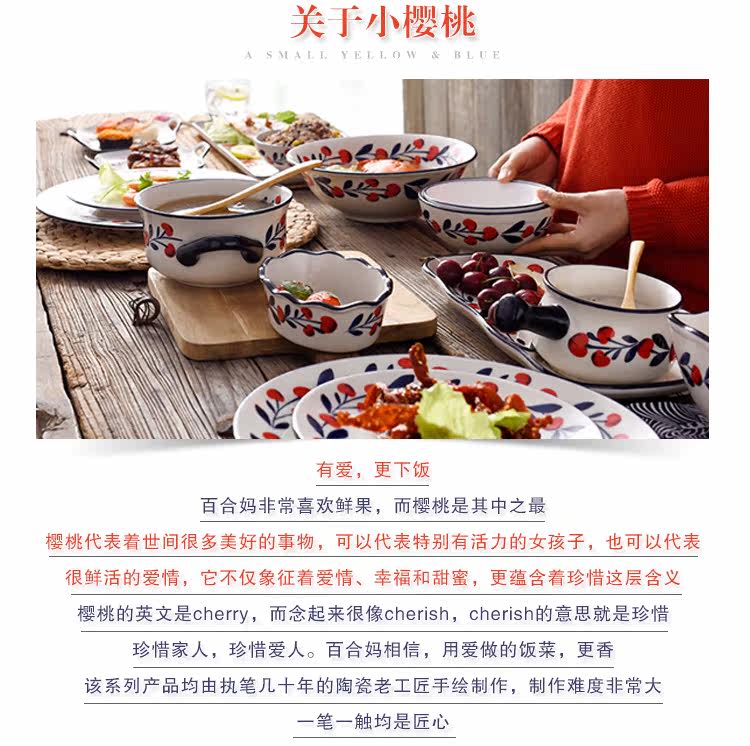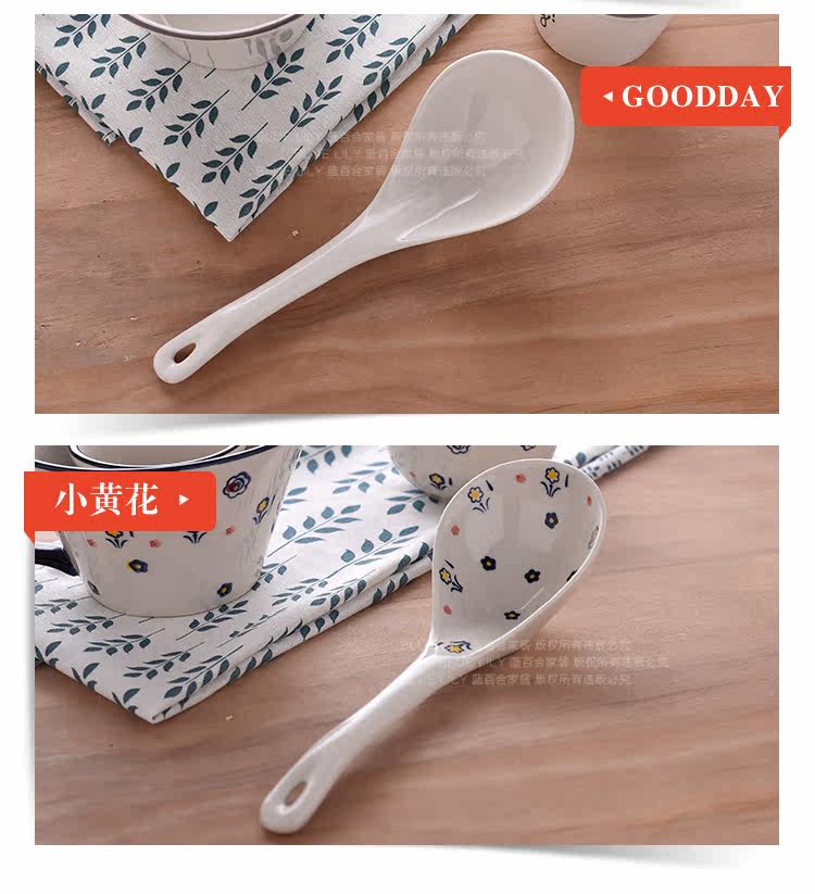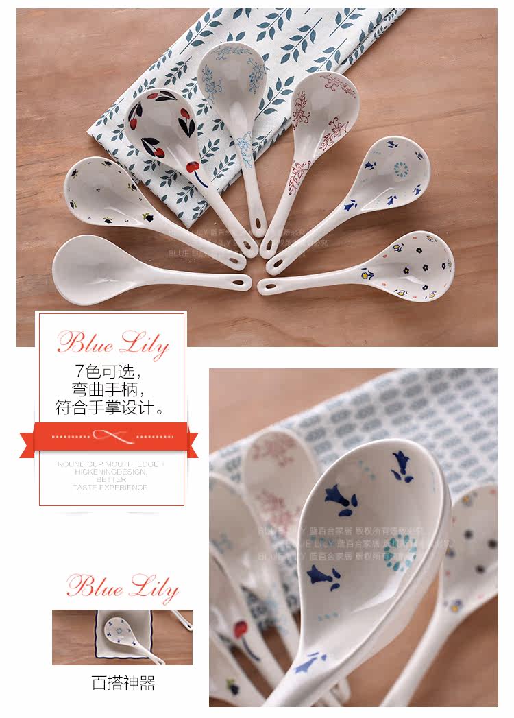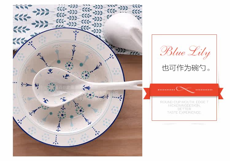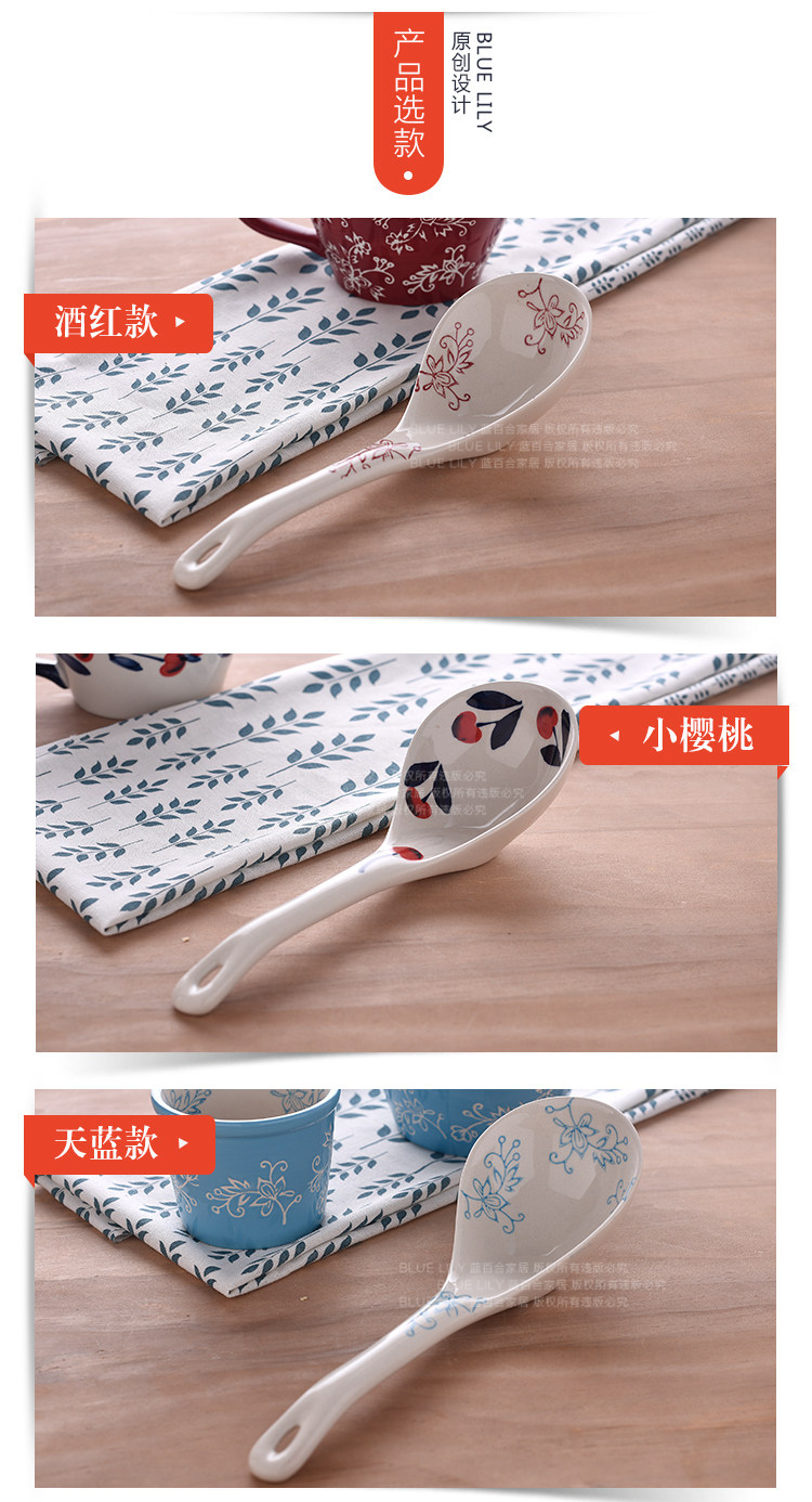 釉下彩汤陶瓷大勺子汤勺家用长柄深勺大号汤勺家用餐具长柄稀饭勺