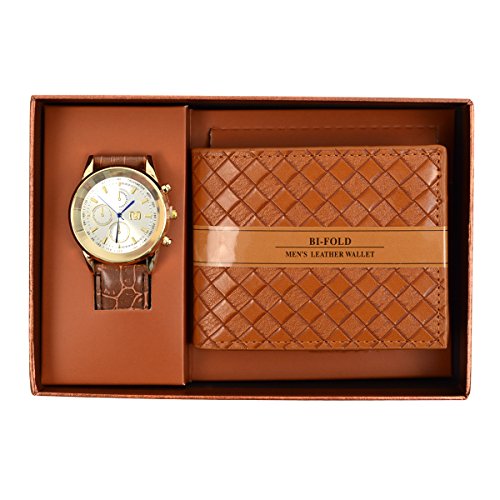 -. Feature : Bi-Fold Leather Wallet / 2 Credit Card slots and 2 Bill Storage Areas / Zipper Enclosure / 1 Analog Quartz Watch / Packed in Gift Box
