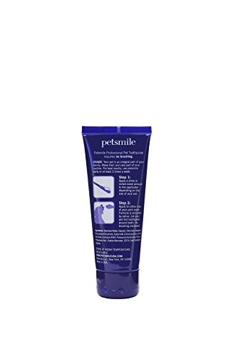 Petsmile Professional Pet Toothpaste is the gentle, safe way to clean your dogs teeth, eliminating plaque and tartar for thorough oral care. Petsmile is the only dental care toothpaste for pets recommended by the Veterinary Oral Health Council (VOHC). They found that with regular use of Petsmile, dogs had significantly less plaque, better oral health and fresher breath. That's because Petsmile's exclusive Calprox formula is clinically proven to inhibit plaque formation for healthier teeth and gums. Petsmile allows you to customize your pet's daily oral care routine. For a deep cleaning, use a toothbrush. For easy maintenance between brushings, apply with our Petsmile applicator swab. Petsmile may also be spread on your pets favorite snack or chew toy for a simple touch-up. Best of all, your pet will love our natural beef flavor. Unlike other toothpastes, Petsmile works on contact to dissolve the protein pellicle on your pets teeth. That's where stains, plaque and bacteria form. Regular use reduces plaque for a healthier, cleaner mouth and no more doggie breath.Feature