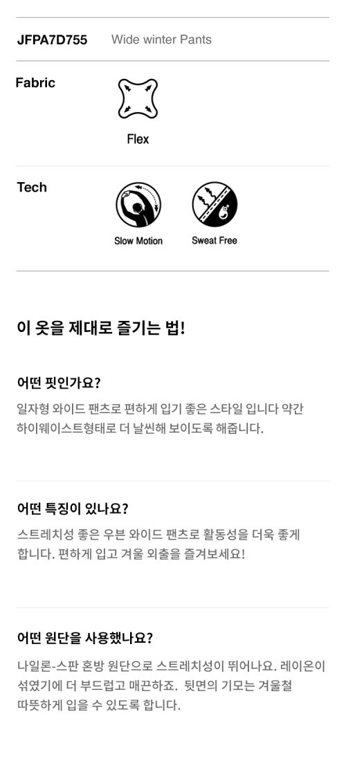 스트레치성 소재로 편안하며 기모 이면으로 겨울철 따뜻하게 착용 할 수 있는 아이템입니다.