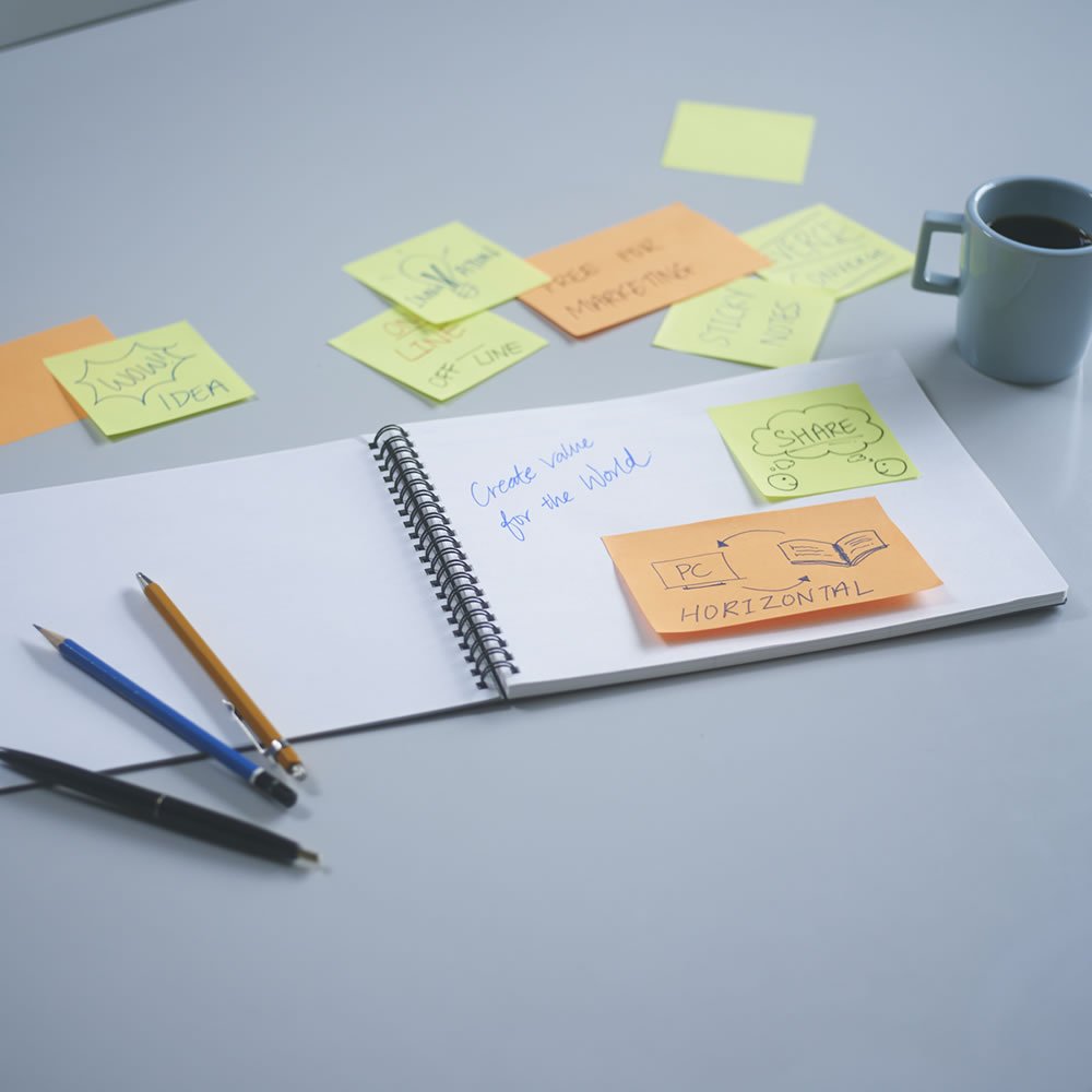 A process of shaping such an idea is realized with a sticky note.