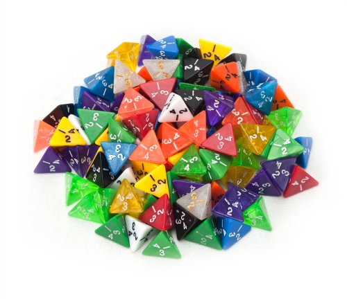 100+ Pack of Random D4 Polyhedral Dice in Multiple Colors By Wiz Dice