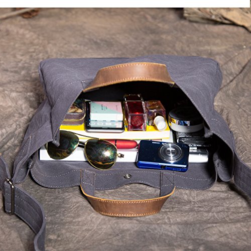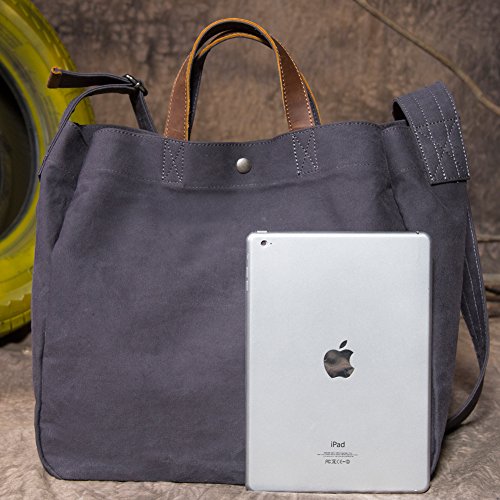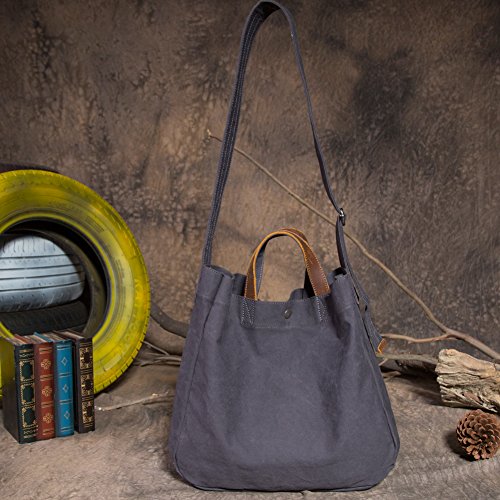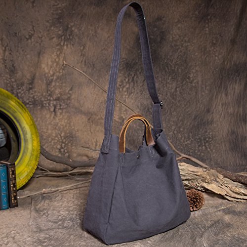 -. Feature : ★Durable thick cotton canvas, genuine leather trim top-handles / ★Spacious compartment, adjustable long and wide canvas fabric strap / ★Slouchy hobo design, crossbody totes style, casual looking, simple structure, multi-functional / ★Fits14inch laptop, A4 magazines, folders, notebooks, iPad, full wallet, water bottle, umbrella, etc. / ★Daily, beach, campus, library, traveling, working, shopping, streetwear, airplane, short weekend trip. It must be the amazing gift for Birthday, Thanksgiving, Christmas, Wedding
