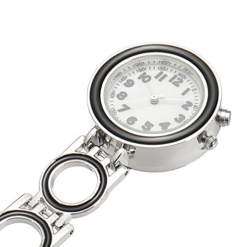 -. Title : ShoppeWatch Nurse Lapel Pin Watch Luminous Glow Backlight Easy Read Black Arabic Numbers White Dial NW229