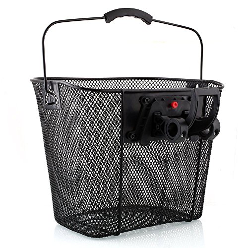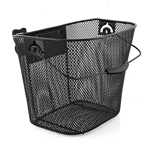 -. Feature : Bike/Bicycle/Bike Metal Mesh Basket & Quick Release Bracket Shopping / Dog Handle Wire Hook-On Basket Black Lage Handlebar Cycling / Lightweight**Front Handlebar Bicycle Basket ** Metal Mesh Design **Easy to fit **Pull up and down carrying handle on basket **With waterproof closed mask; With plastic quick release; (Suit for diameter:22-24 mm ); Ideal for transporting shopping etc on your bicycle **Universal fitting mechanism for fixing on bicycle handlebars / Color:Black ** Material: iron; Size: 340 * 250 * 275 mm; (L*W*H) Height :275mm **Length :250mm **Width: 340mm **Max.Load: 10 kg; Net weight: 1073 g; Packing size: 37 * 29 * 29 cm; / Package Included: 1× Bicycle Metal Mesh Basket