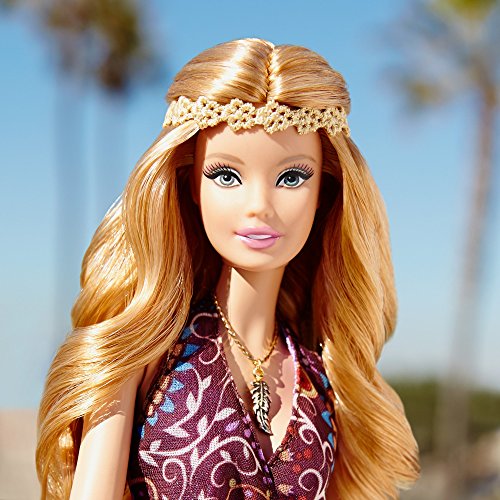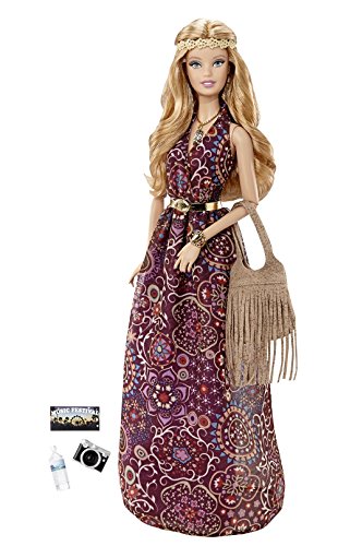 -. Feature : Always center stage, this Barbie doll definitely has "the look" inspired by music festival trends as seen on Instagram @BarbieStyle / She wears a long boho dress complemented by a flower headband, necklace, bracelets, belt, platform shoes and fringed handbag / She also has everything needed for the festival as well: map, camera and water bottle / Flawless makeup and nails are the final touch-making this beauty a stand out in the festival crowd / Perfect for any Barbie Collection