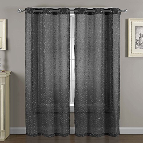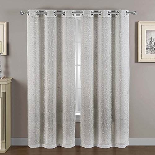 The Calverton Embroidered Window Curtain Panel simplify the casual and contemporary styling of Home Decor. Designed for a look of elegance, the grommets are spaced in such a way that the drapery forms neat pleated gatherings when left partially open. 1.5 Inch Internal Grommet Diameter. 100% Polyester, Dry Clean.Feature