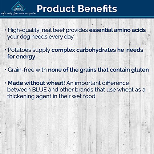 Now the mouth-watering aroma of a traditional Backyard BBQ, complete with side dishes, will whet your dog’s appetite for the great flavor and natural goodness of: Real beef as the first ingredient, Potatoes, Green Beans, and Carrots. Like all BLUE dog food, Backyard BBQ has NO chicken or poultry by-product meals, NO corn, wheat, soy and NO artificial preservatives, colors or flavors.Feature