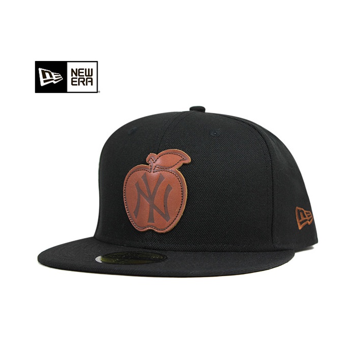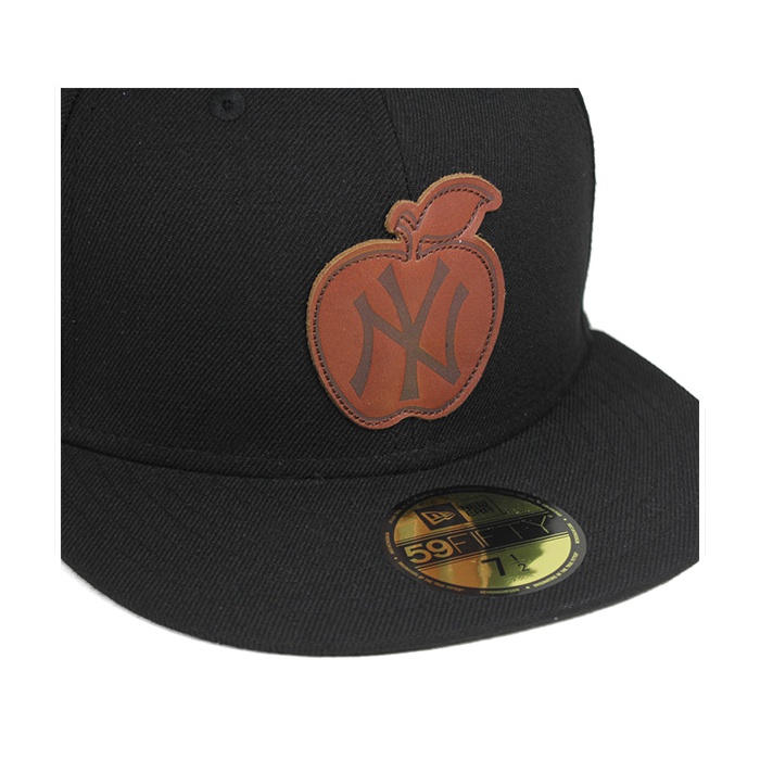 NEWERA 캡 뉴욕 양키스 레더 패치 블랙 모자 NEWERA 59FIFTY CAP MLB NEW YORK YANKEES LEATHER PATCH BLACK [ 캡 맨즈 모자 베