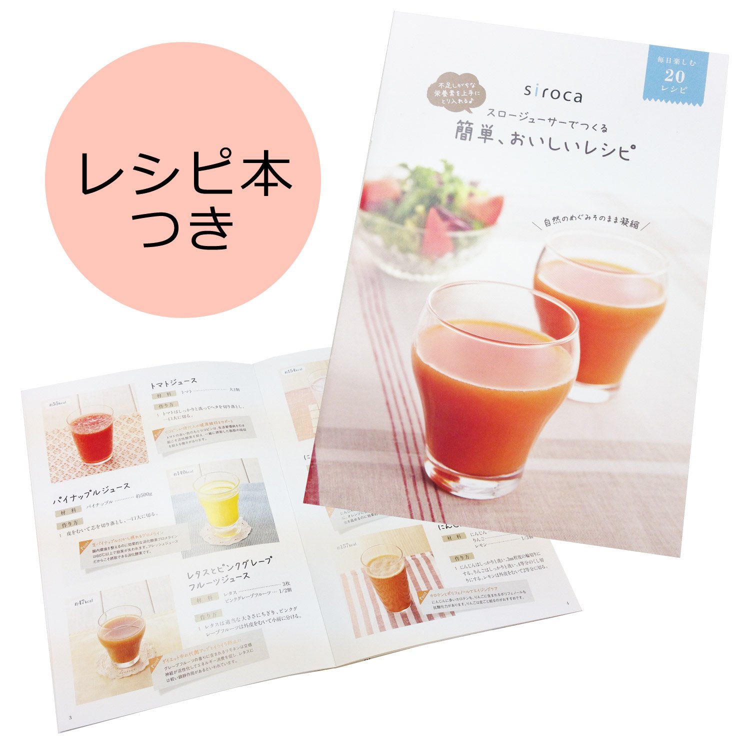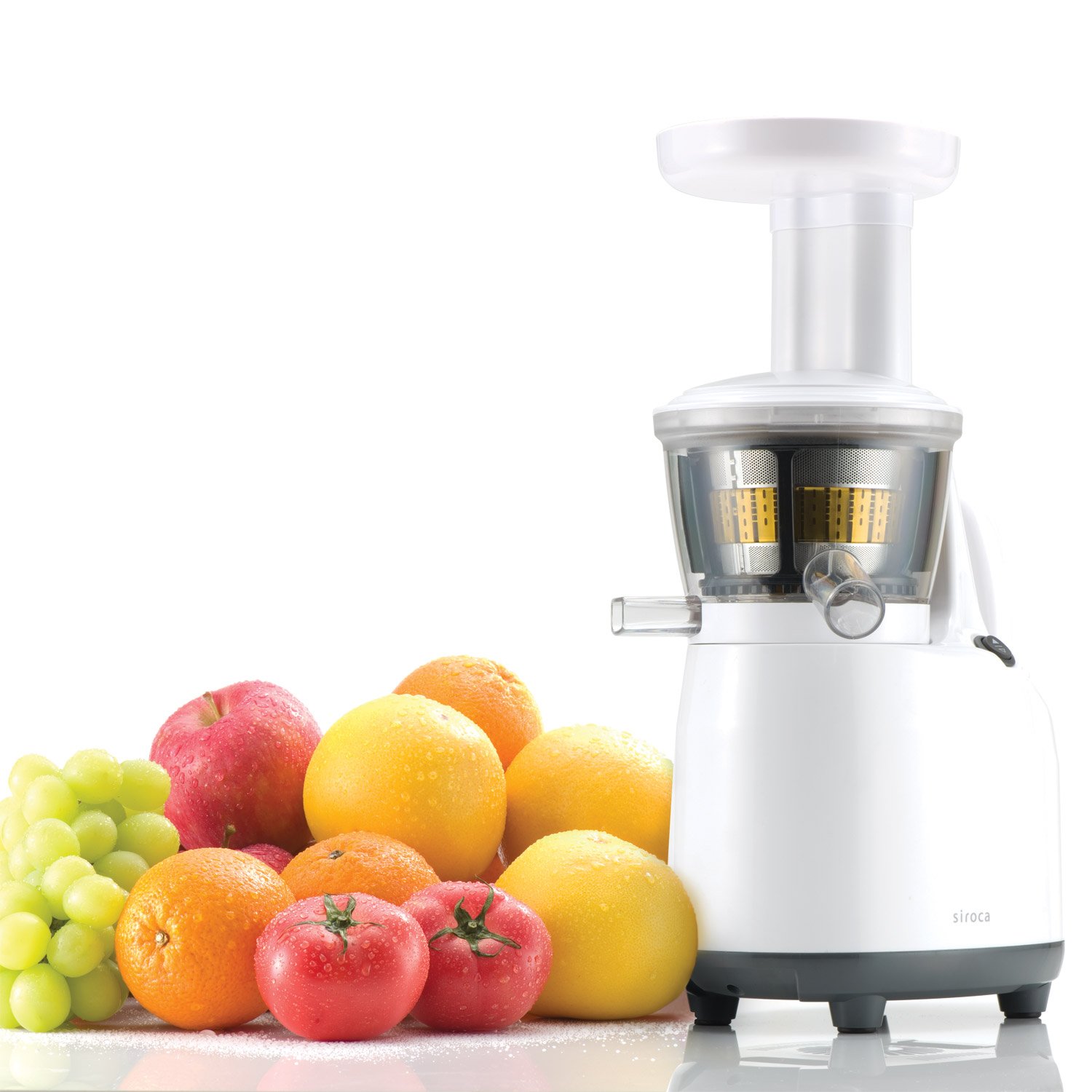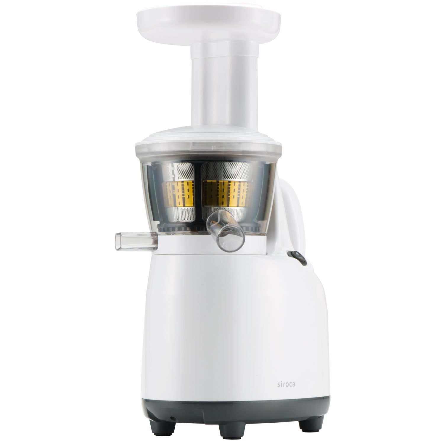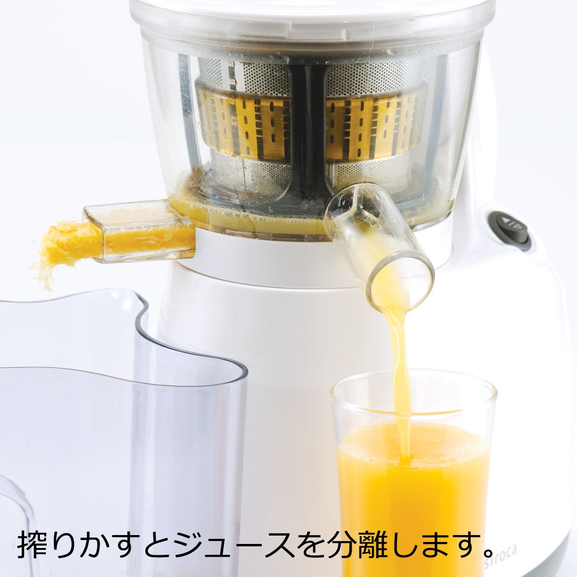 siroca slow jucer squeezes fruits and vegetables thrown in from the top slowly with a millstone formula, so it is characterized by nutrients being difficult to break.