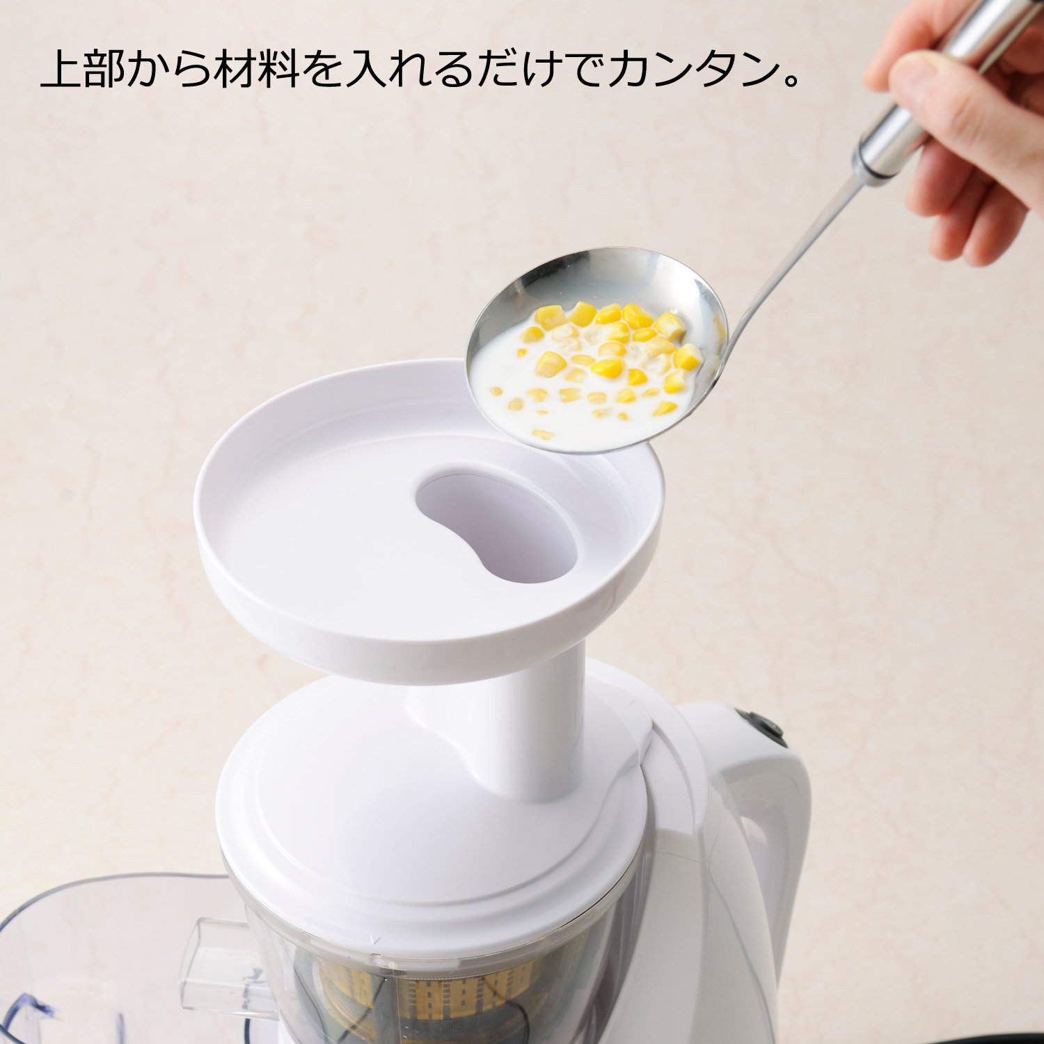 Just by inserting raw fruits and vegetables from the inlet, you can make freshly squeezed raw juice.
