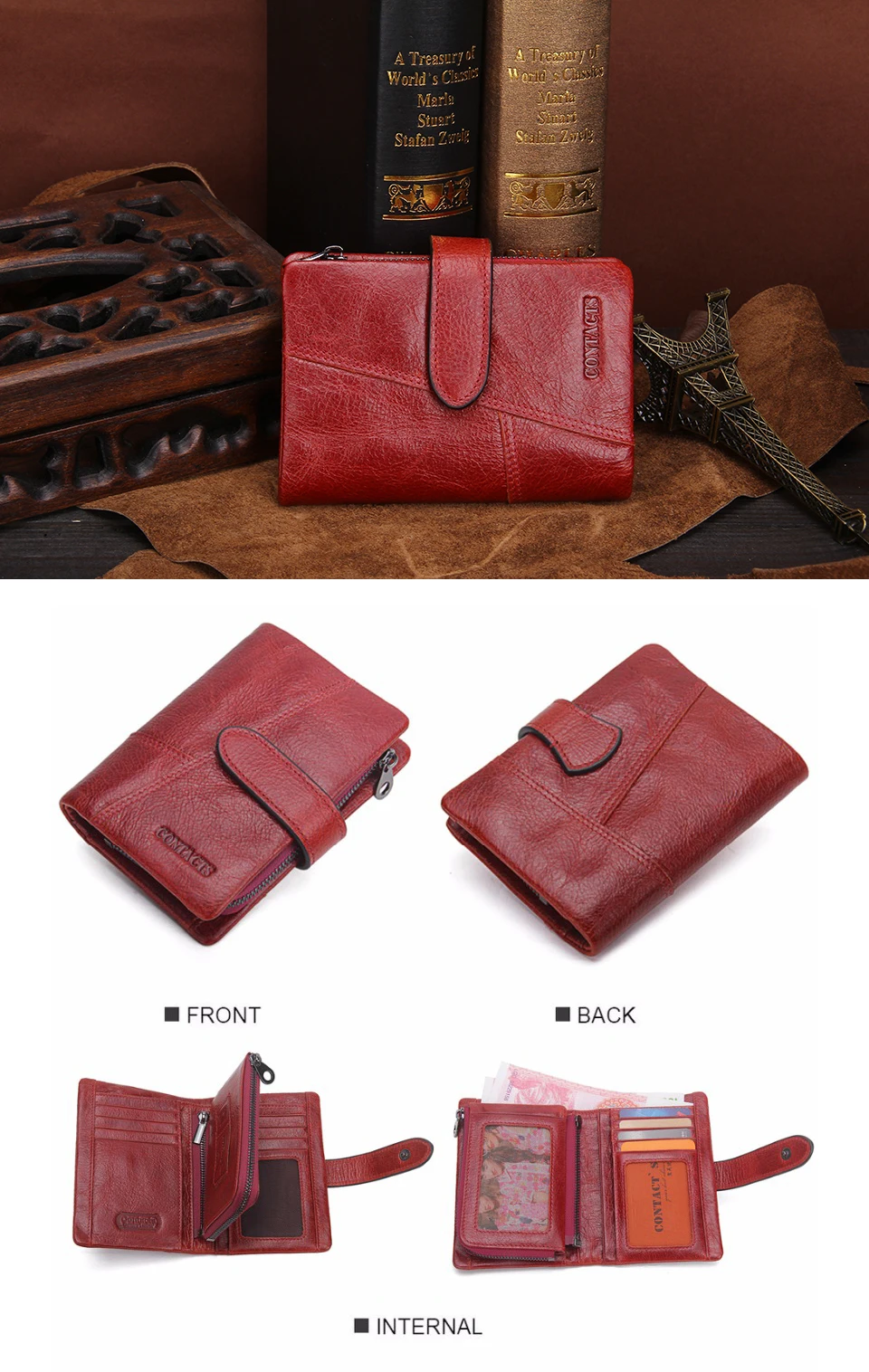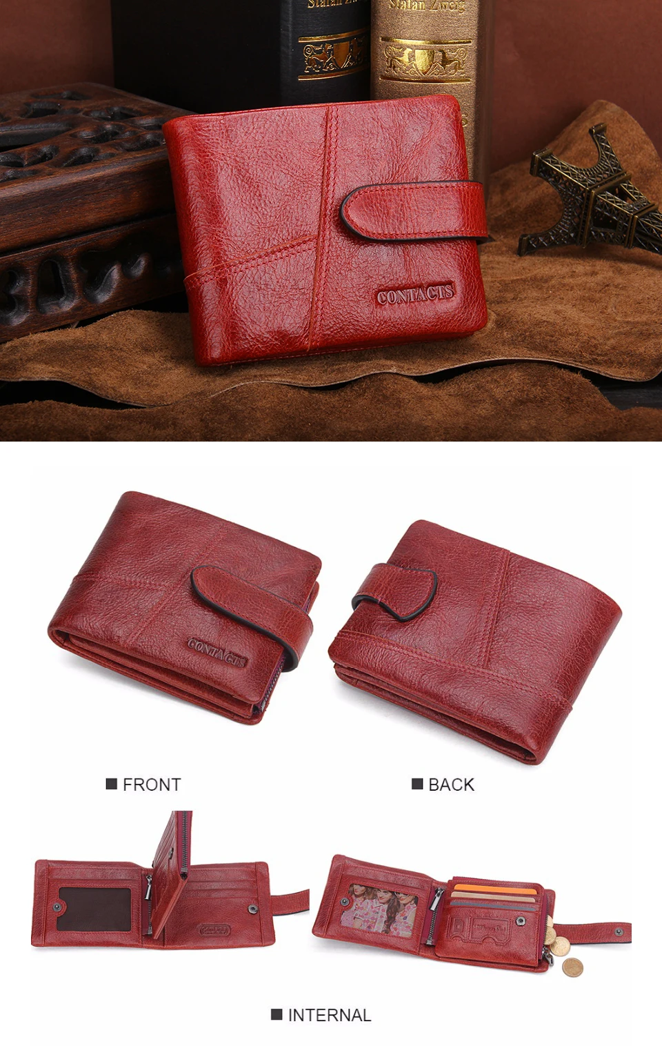Interior:Photo Holder,Interior Zipper Pocket,Cell Phone Pocket,Zipper Poucht,Coin Pocket,Interior Compartment,Interior Slot Pocket,Note Compartment,Card Holder