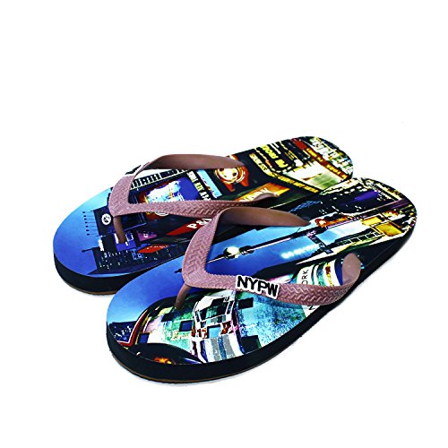 (P W New York)/Women's/Sandals/DIRECT FROM USA/P W New York Women's Casual Brown Rubber Flip Flops Slippers, City Streets Print