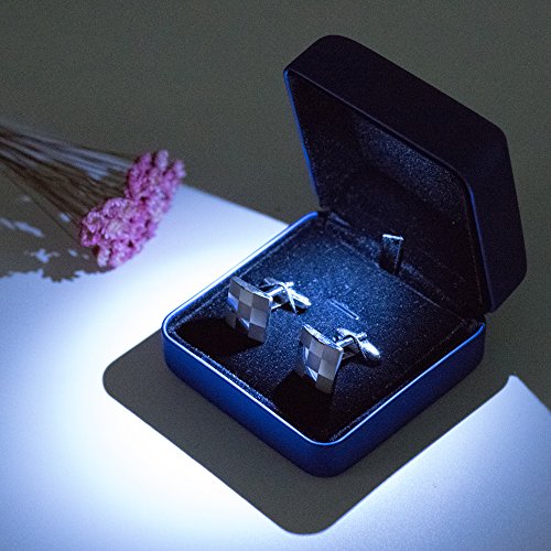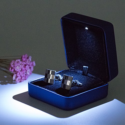Luxury Dark Blue PU Leather with LED Cufflink Box Case