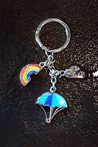 Keyring with 3 charmsrainbow, cloud, umbrellacast metal/enamelmulticolouredchrome plated