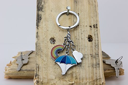 The most beautiful parts of rain - RAINBOW has them all. Clouds, umbrella and rainbow in bright colours: Honestly, who's missing the sun, if it's raining? Certainly not your keys. Made of cast metal and enamel, shiny.
