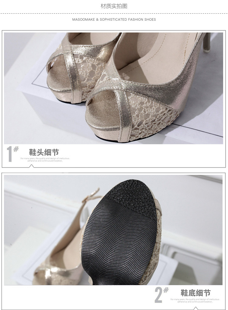 夏季新款欧美超高跟鞋12CM夜店防水台性感细跟蕾丝情趣鱼嘴凉鞋女
