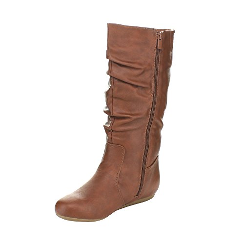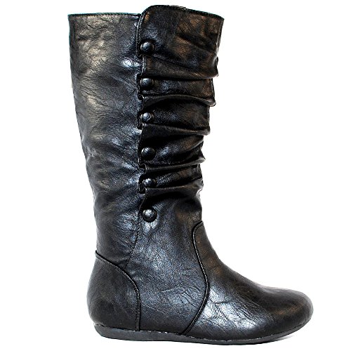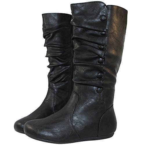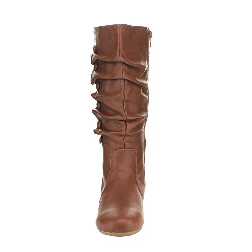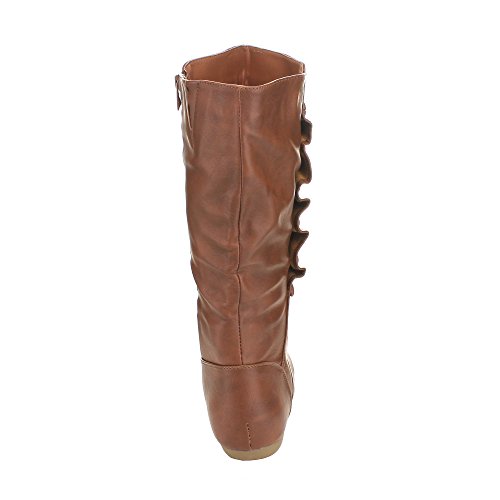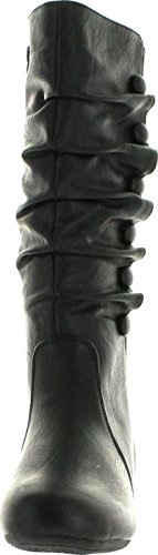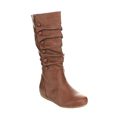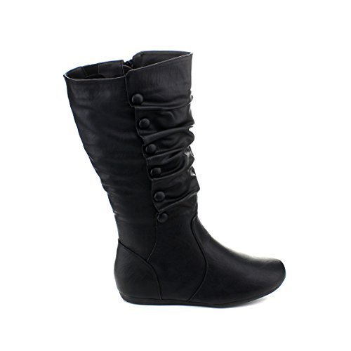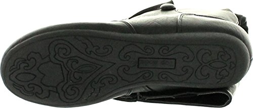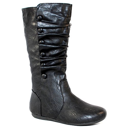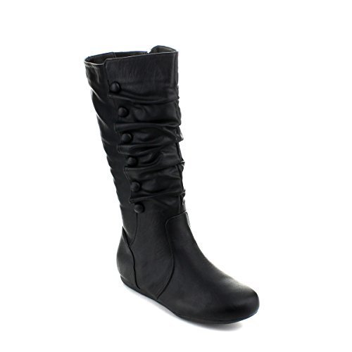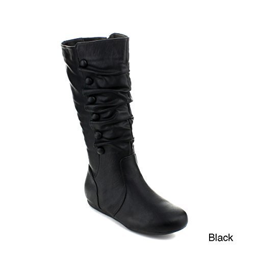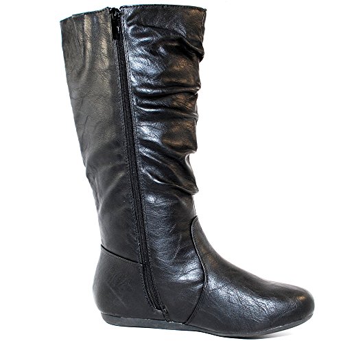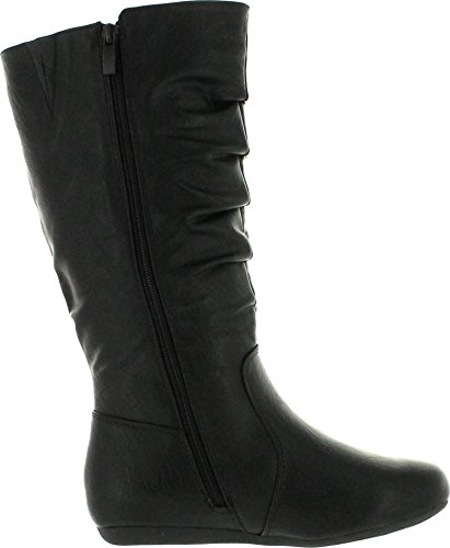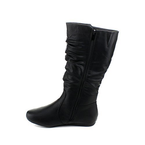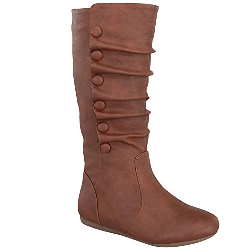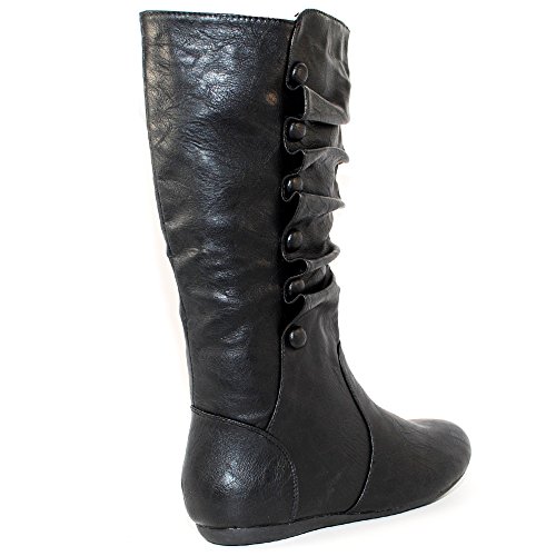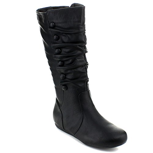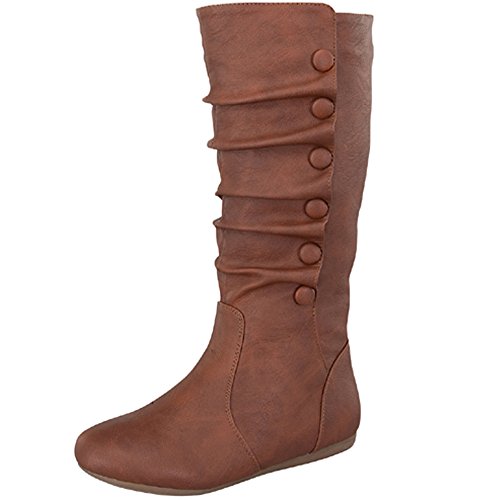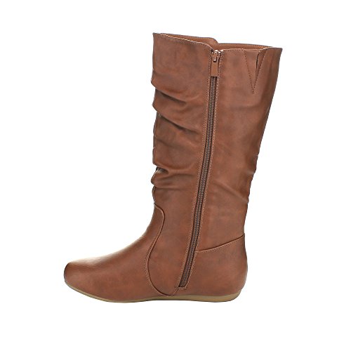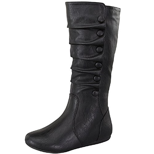 Top Moda Bank-78 Womens Mid Calf Round Toe Stiching Flat Boots