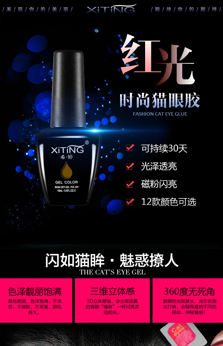 希婷环保可卸光疗火焰猫眼甲油胶蔻丹红光酒红猫眼胶芭比甲油胶