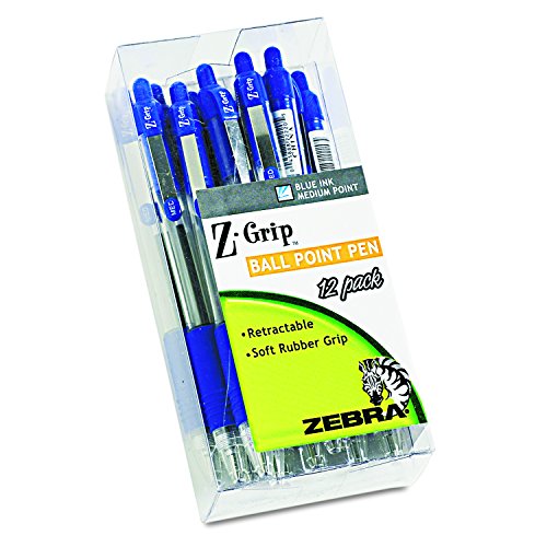 -. Title : Zebra Z-Grip Retractable Ballpoint Pen, Medium Point, 1.0 mm, Clear Barrel, Blue Ink, 12-Count