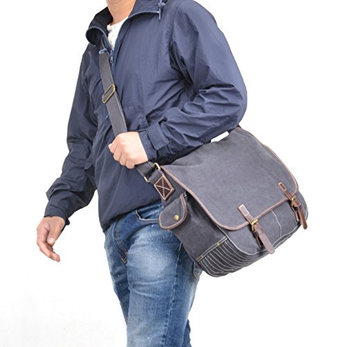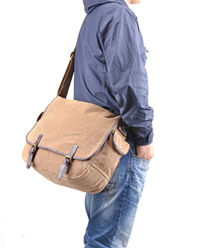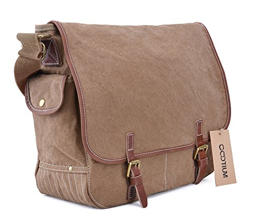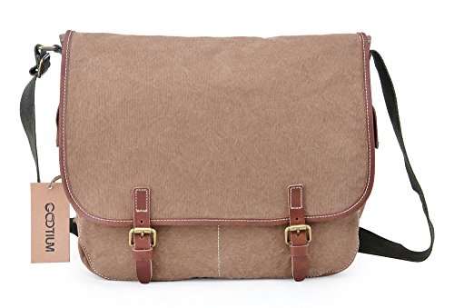 -. Brand : Gootium -. Department : mens -. Feature : Material: high density and Stone-washed canvas with genuine leather trim. / Shoulder bag dimensions: 15.4"(L)*5.5"(W)*13.8"(H) / 39x14x35 cm and weighs 2.1 lbs. / Large capacity, roomy enough to accommodate a laptop up-to-16 inch as well as A4 size books, binders. / Smooth, clean and even stitching throughout will enable many years of use. / This canvas shoulder bag is ideal for casual use, also work very well as a book bag for a student to take to any high school or college campus. -. Model : 51029 -. ProductGroup : Apparel -. ProductTypeName : LAGE -. Title : Gootium Vintage Military Canvas Messenger Shoulder Bag Men's Satchel