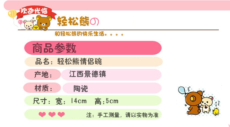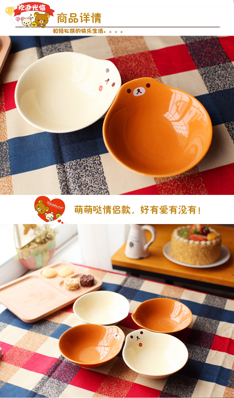 卡通情侣轻松熊骨瓷碗 创意日式可爱白瓷微波炉 陶瓷米饭套碗餐具