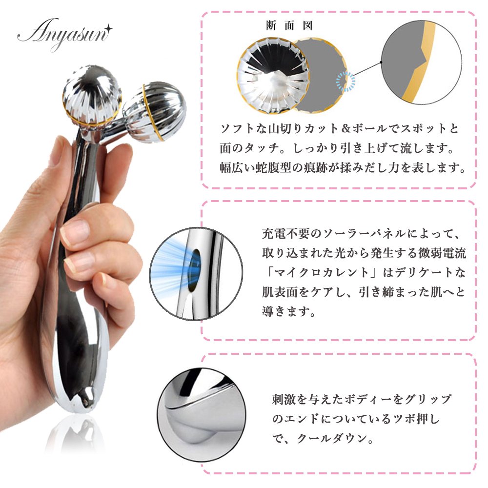 In order to realize the movement which reproduced the professional technique, it moves smoothly in accordance with the curve of the skin by a combination of various conditions such as the shape of the ball and the angle of the roller, so pinch the part of the trouble