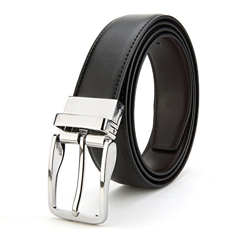 -. Title : (トレンディ)Trendy メンズ ベルト 革 ビジネス カジュアル 回転バックル 両面使用できる リバーシブル ピンバックル 男性用 スーツ用 調整可能 ロング 120cm 誕生日 プレゼント ブラック ブラウン 【ギフト用BOXが付属】