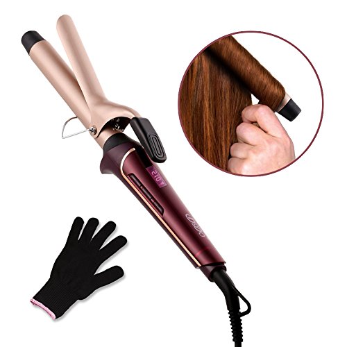 Hair Curler, ABTTY LCD Curling Iron Styler Fast Heating Hair Styling Tools Electroplating Handle Ceramic Curling Wand with Heat Insulation Glove (Gold)